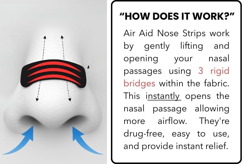 If you’ve been dealing with snoring, stuffy nose, or difficulty breathing, AirAid Nose Strips offer a fast-acting, drug-free solution that truly works. Backed by over 60,000 satisfied users around the world, this small but powerful strip can make a big difference in your sleep, performance, and daily comfort.